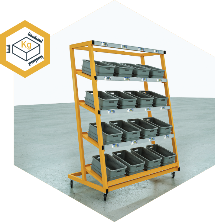 While the BOWE IQ DataStation can be purchased as a standalone product, it also works in perfect harmony with our Pick/Put-to-Light (PTL) trolleys, complete with shelves, lights and electronic displays. With intelligent BOWE IQ software orchestrating the workflow between the two, items can be weighed, scanned, and labelled at the DataStation and simultaneously logged onto the PTL system that controls the lights and displays on the trolleys, guiding workers visually to the correct tote-box.